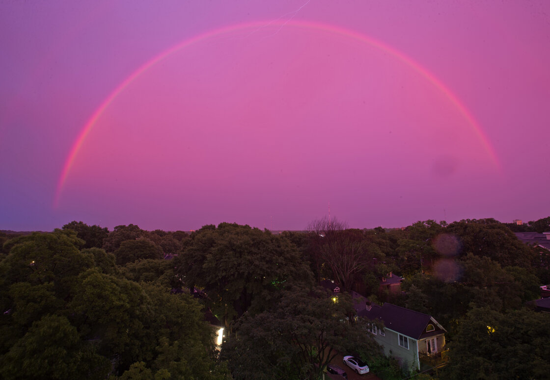 هذه الصور المذهلة ملتقطة في يوم الخميس الماضي لسماء مدينة أتلانتا في الولايات المتحدة الأميركية، الصور تمثل ما خلّفته العاصفة القوية التي ضربت المنطقة في وقت غروب الشمس، حيث نتج عنها تشكّل سماء حمراء رائعة بالإضافة إلى قوس قزح مزدوج يمتد فوق كامل مدينة أتلانتا.
